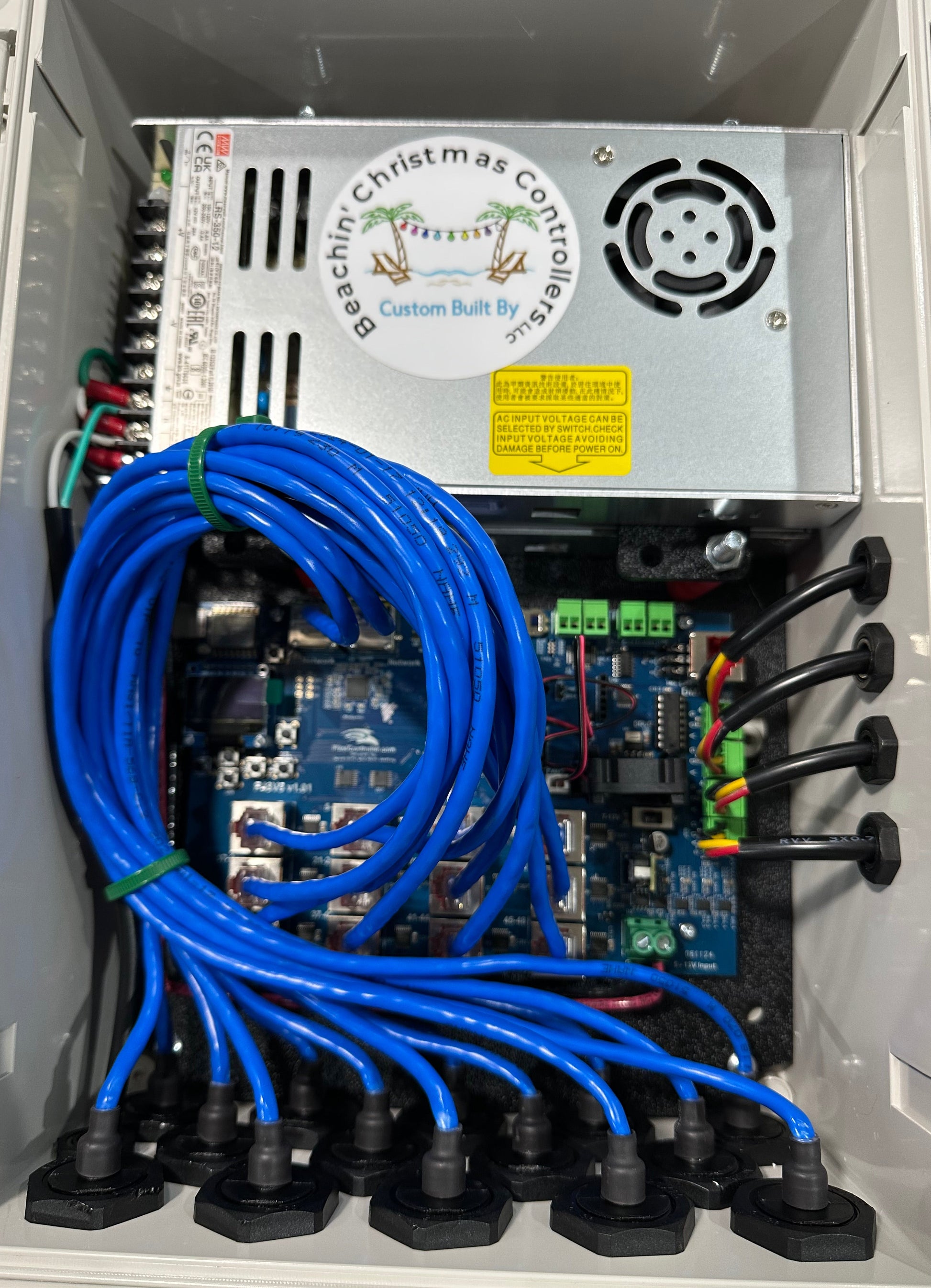 Includes differential controller and (1) 350W power supply with 4 local pixel pigtails wired out in a BUD or equivalent enclosure. Custom options including multiple smart receivers in the same enclosure or other modifications are available - email for custom quotation on any unit. Enclosures are built after purchase - lead time is approximately 2-4 weeks barring any material procurement issues. We will contact you if lead time may be longer. ***Images may have other components not listed or may be of more customized builds for other customers.***